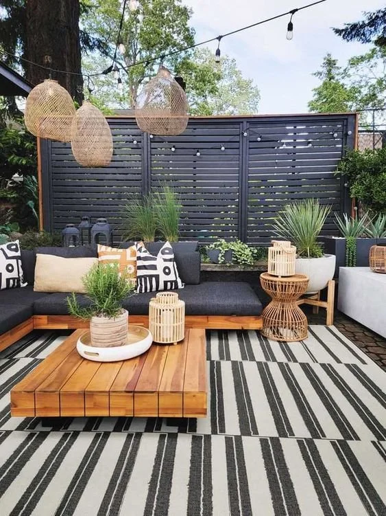 Bring the indoors outside with rugs and cushions.